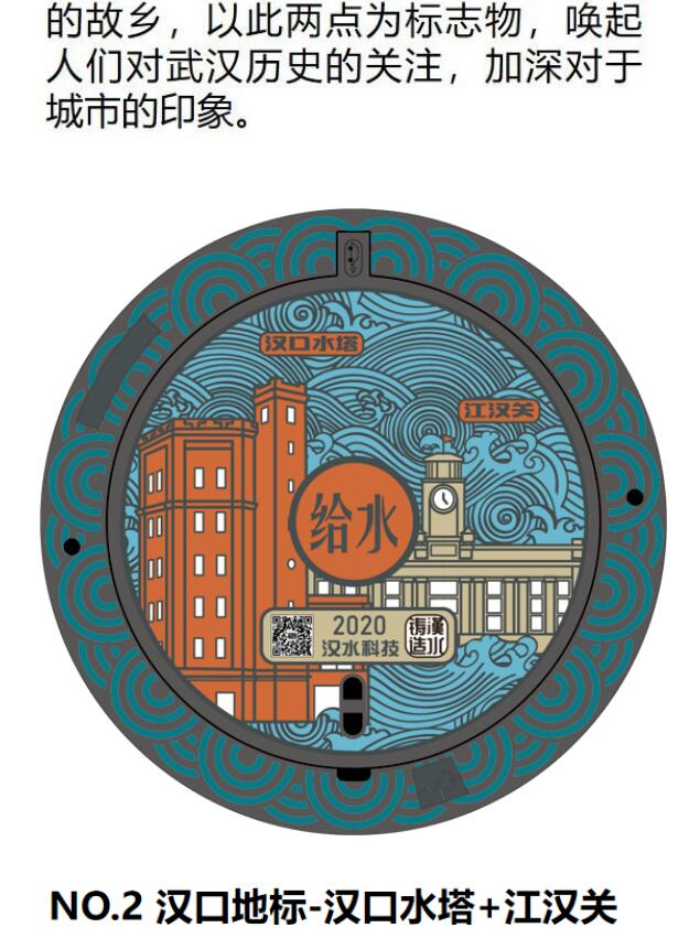 除了外形新穎,“漢水”系列文化井蓋還非常智能,每個(gè)文化井蓋都設(shè)計(jì)了獨(dú)立二維碼,通過(guò)手機(jī)掃描,可看到圖案中對(duì)應(yīng)地標(biāo)建筑的人文故事、地下供水設(shè)施情況及供水服務(wù)信息等。同時(shí),如后期通過(guò)專業(yè)軟件掃描二維碼,還可以查詢到供排水企業(yè)使用的地理信息編碼,了解該井蓋的建設(shè)時(shí)間、井下設(shè)備狀況、管道設(shè)施情況、相關(guān)維護(hù)信息等一系列資料,方便產(chǎn)權(quán)單位管理及維護(hù)。
